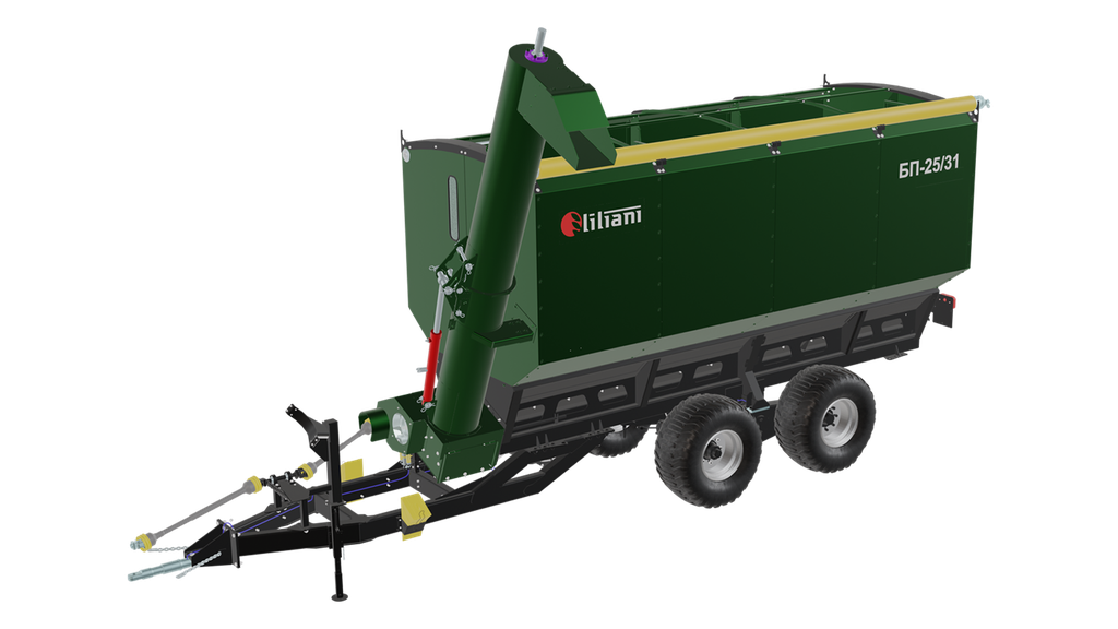 Хит продаж. Данная модель наилучшим образом сбалансирована в соотношении цена/качество и много лет является флагманом наших продаж. Грузоподъемность в 25 тонн совпадает с востребованной грузоподъемностью грузовиков-зерновозов и хорошо соотносится с кратностью емкости приемных бункеров большинства популярных комбайнов. Относится к негабаритной серии. Производительность выгрузки - 450/600 т/час. Мощность трактора - от 150 л.с.