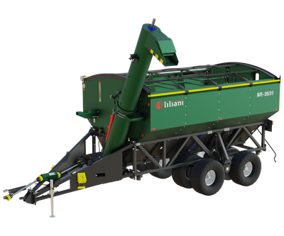 Хит продаж. Данная модель наилучшим образом сбалансирована в соотношении цена/качество и много лет является флагманом наших продаж. Грузоподъемность в 25 тонн совпадает с востребованной грузоподъемностью грузовиков-зерновозов и хорошо соотносится с кратностью емкости приемных бункеров большинства популярных комбайнов. Относится к негабаритной серии. Производительность выгрузки - 450/600 т/час. Мощность трактора - от 150 л.с.