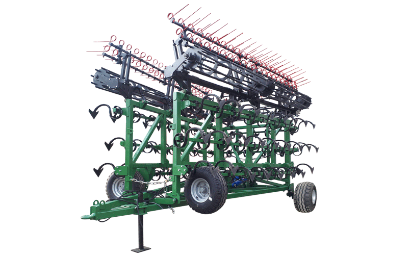 Расстановка S-образных стоек увеличена, что позволяет работать по стерне, тяжелым почвам и плохо подготовленным агрофонам.
