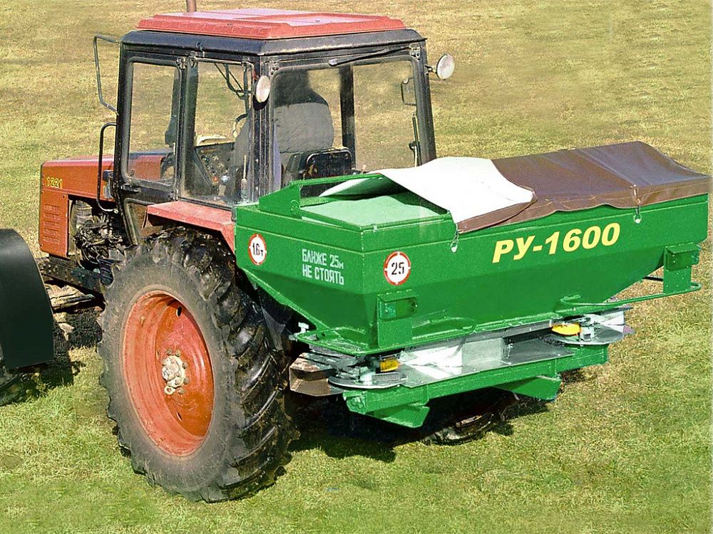 Распределитель удобрений РУ-1600 предназначен для поверхностного внесения твердых минеральных удобрений в гранулированном и кристаллическом виде, а также для подкормки озимых зерновых культур (в ранней стадии развития), лугов и пастбищ.