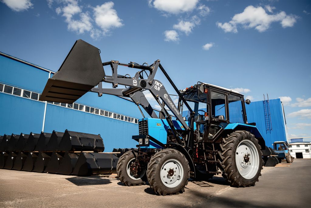 В стандартном исполнении погрузчик фронтальный навешивается на трактора Беларус 8-ой серии.