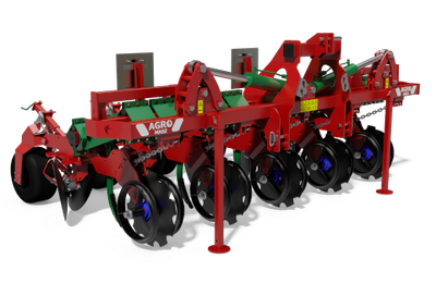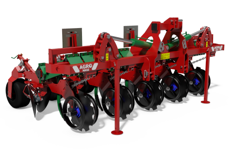 Задача культиватора - уничтожение сорняков из междурядья пропашных культур, аэрация почвы, рыхление почвенной корки. Агрегат состоит из ПЯТИ секций, каждая из которых имеет по четырех полностью регулируемых рабочих органа. Первый - это два литых кольцевых копирующих колеса с установленым между ними режущим диском. Потом следует почвообрабатывающая стойка со сменным рабочим органом. Третья секция - два режущих диска с чистиками. Четвертая - резиновые прикатывающие колеса с функцией регулировки рабочей глубины.