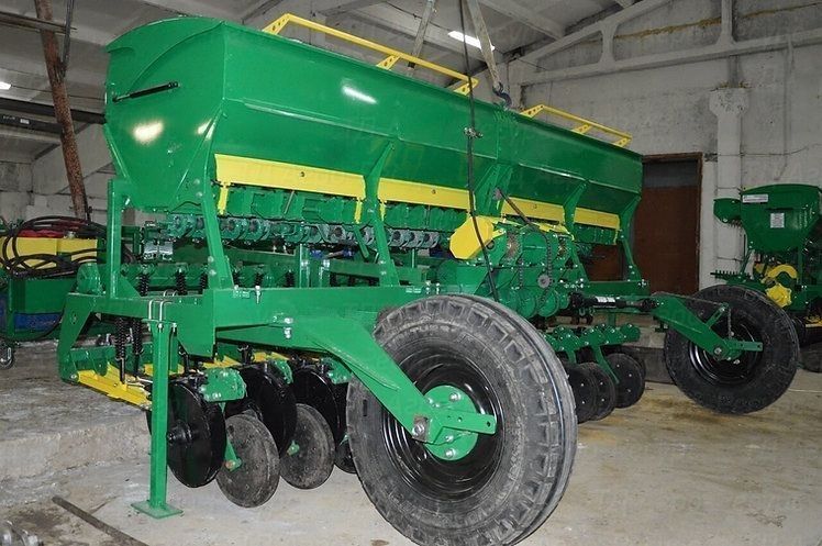 Сеялка выпускает с двухдисковыми сошниками на 4-х опорно-приводных колесах.