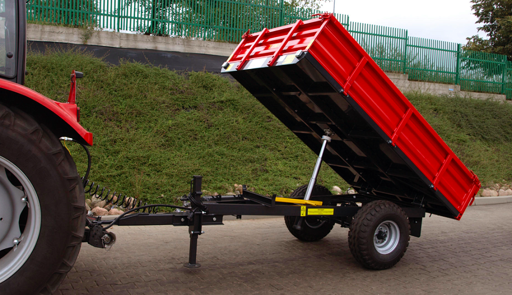 Бортовой прицеп самосвального типа для трактора позволяет перевозить разнообразные грузы. Компактные размеры и высокий уровень маневренности. Грузоподъёмность составляет 1,5 тонны.